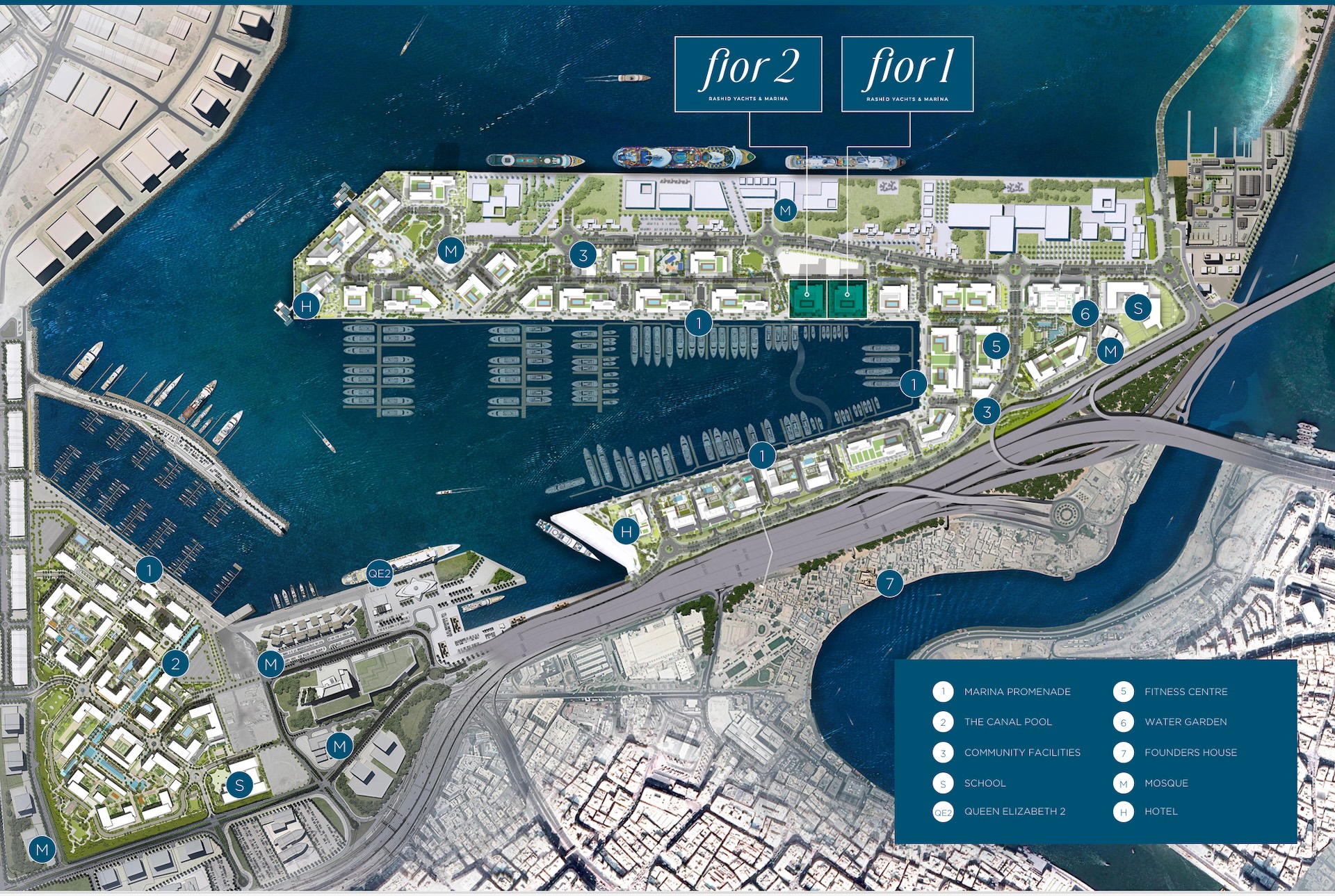 Rashid Yachts & Marina predstavlja jednu od najatraktivnijih novih waterfront lokacija u Dubaiju, zbog čega je mnogi nazivaju “novim Monte Carlo”. Smještena uz samu obalu, u neposrednoj blizini Downtowna i preko puta Dubai Islands, ova ekskluzivna marina zona spaja prestiž, privatnost i vrhunsku povezanost s gradom.